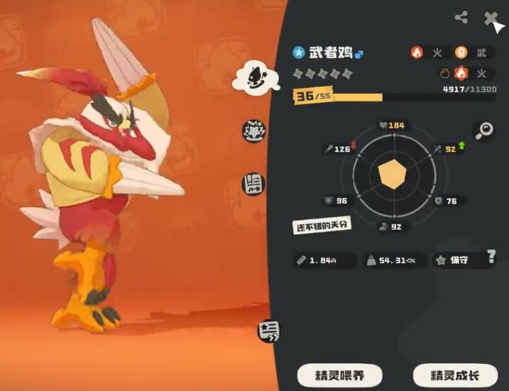 1. 武者雞是雙屬性打擊與高爆發的完美結合體,36級進化條件簡單易達成。