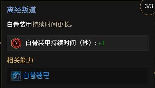 血肉轉(zhuǎn)移,白骨裝甲減傷/回藍(lán)/釋放詛咒/狂怒,左下角的恐懼效果可打斷boss一次,選擇好時(shí)機(jī)使用