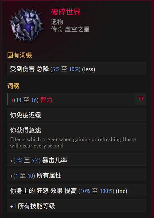 詞綴優(yōu)先級(jí):智力>幾率碎甲>施法速度=血量=暴傷減免