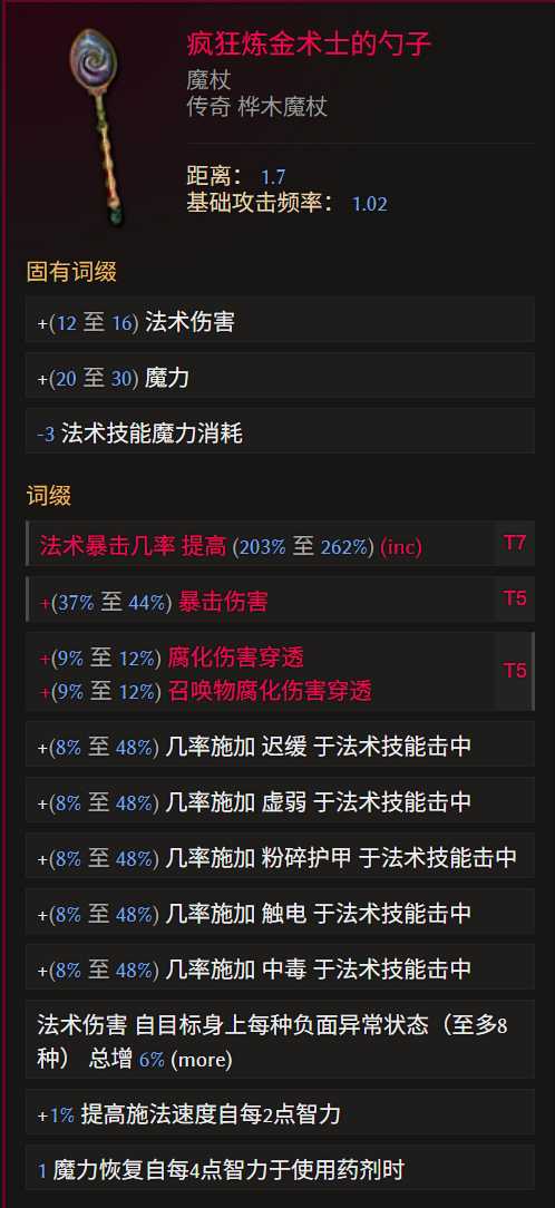 詞綴優(yōu)先級(jí):法術(shù)暴擊幾率>暴傷=魔力>腐化穿透>擊中冰緩