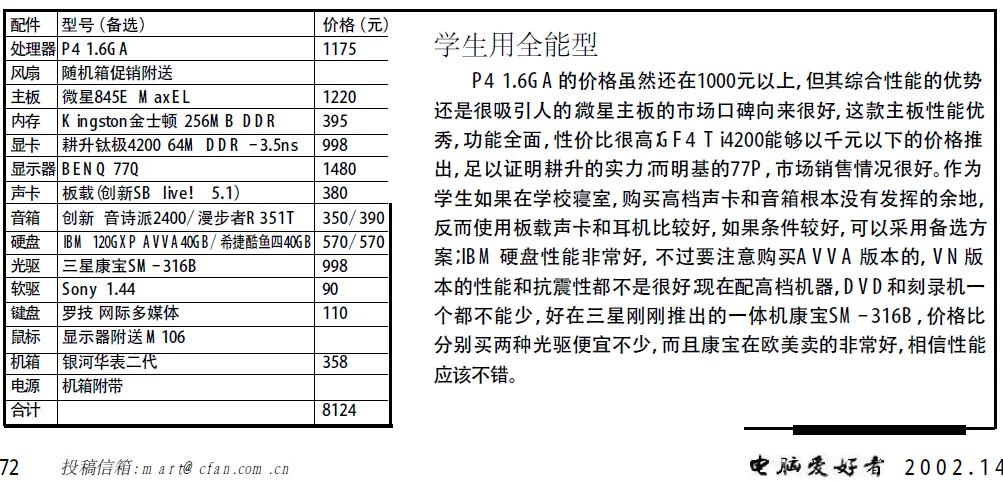 《電腦愛好者》刊載的一期推薦裝機圖,售價8000元的電腦在當時屬實不菲